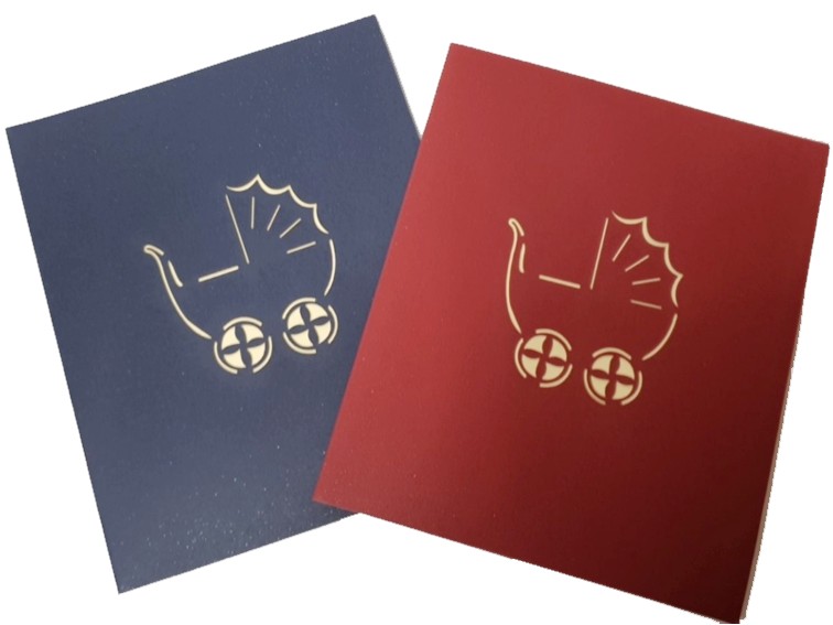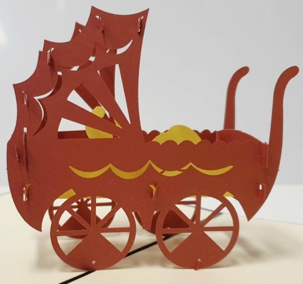Uue ilmakodaniku sünni puhul või ka katsikule minnes on tore kingitus 3D lapsevankriga kaart, kus on ka beebi sees :). Kaarte on nii sinise kui ka punase veidi sädeleva ümbrisega, mõlemal juhul on sees 3D vanker punane. Kaardi mõõdud kinnisena 153 x 127 mm ja kaasas on ka hele sädelev ümbrik.