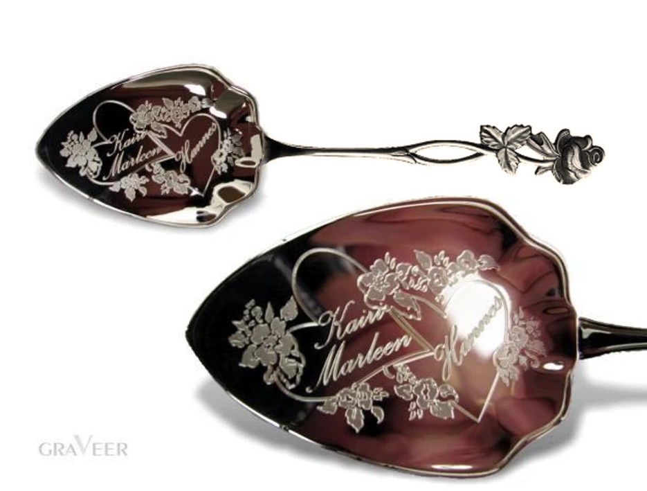 Uushõbedast koogilabidas personaalse graveeringuga. Tordilabidas on 186mm/57 mm. Teie soovide kohaselt graveeritud tordilabidas sobib nii pulmakingituseks, kui ka mistahes teiseks elusündmuseks.