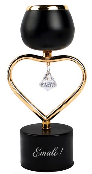 Südamemotiiviga küünlajalg on hea kingitus inimesele, kes armastab külmadel talveõhtutel küünlaid põletada. Kõrgus 235 mm ja ümara aluse läbimõõt on 80 mm. Küünla läbimõõt saab olla kuni 50 mm. Teie soovitud teksti graveerime alumisele metallosale ja graveering jääb hõbedane.  Vastavalt graveeringule sobib see toode kinkida erinevateks elusündmusteks.