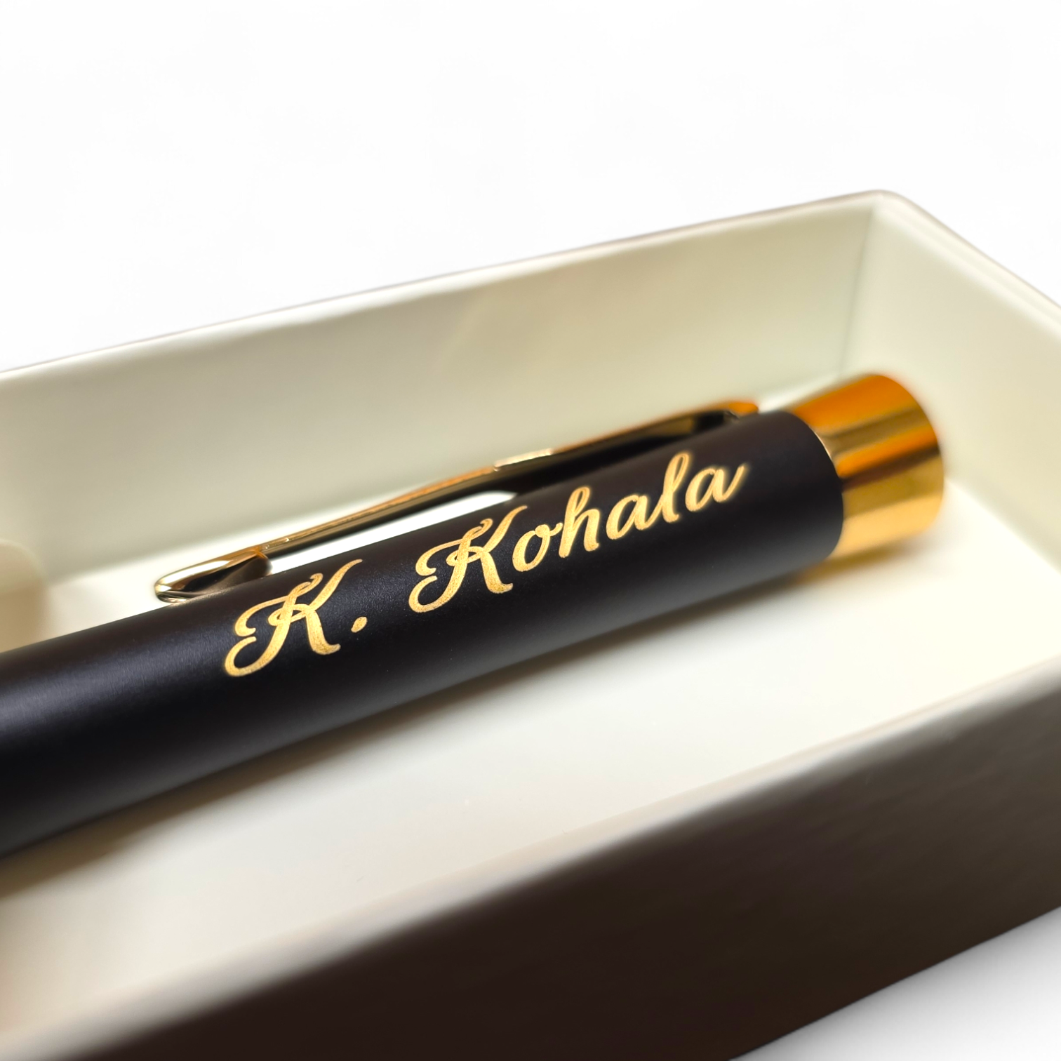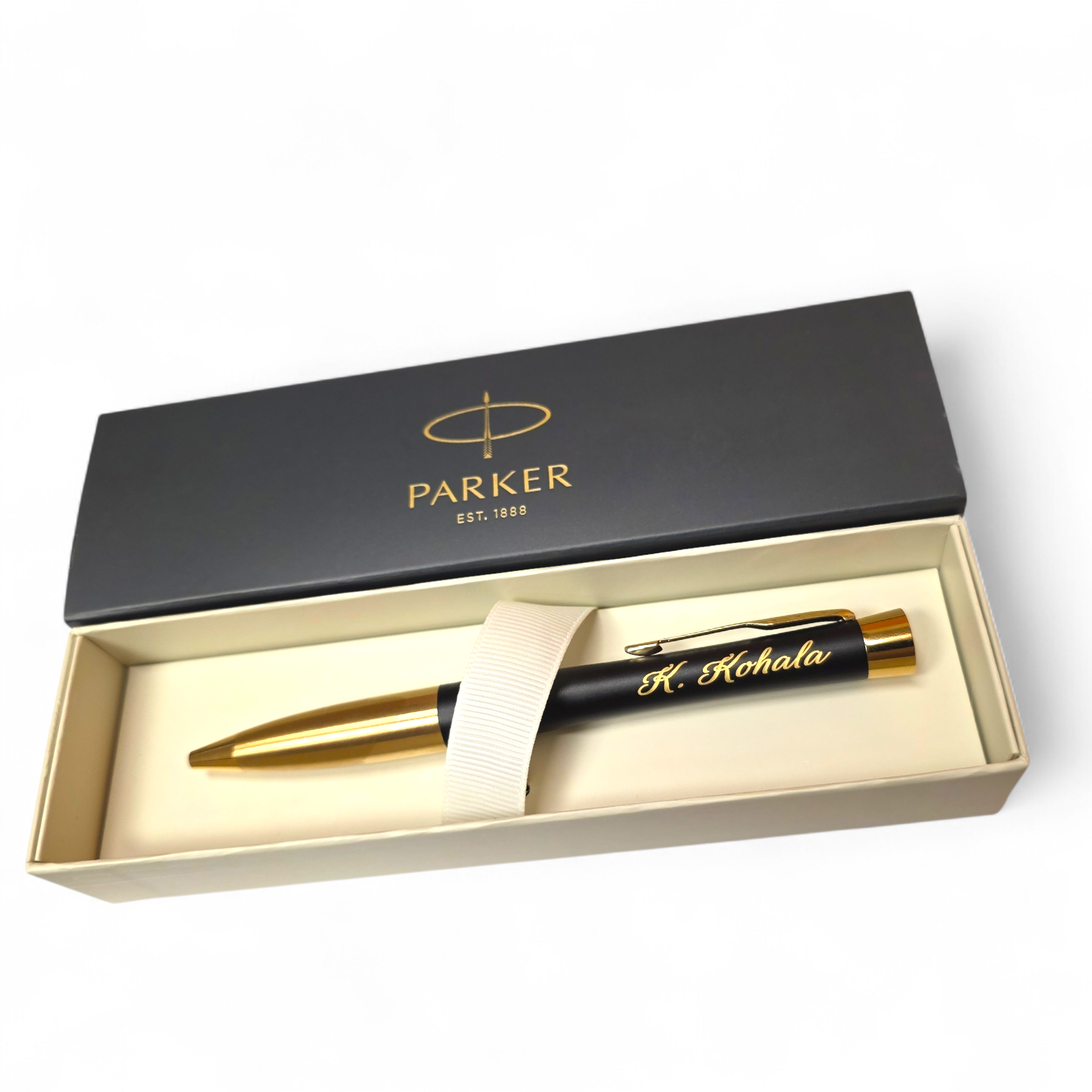 Parker-i pastakatootmise kogemused on üle saja aasta vanad. Kindel kvaliteet. Sellel PARKER pastapliiatsil on summutatud musta lakiga viimistlus, millele on lisatud silmatorkav kuldne ääris ja kest. Graveering jääb tänu mustale viimistlusega ka efektsem ja rohkem näha kui roostevaba terasest kestal. Hind sisaldab graveeringut. Kinkekarbis