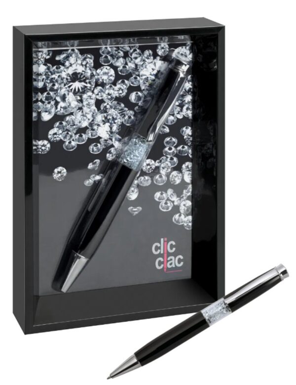 Pastakas on sädelevate kivikestega ja pildiraam on plastikust ja 10×15 cm fotole. Pastakale saad graveerida nime metallklipsile ja pildiraamile saab graveerida sildi 1,5x 8 cm. Mustale pildiraamile graveerime musta sildi hõbedase tekstiga. Mustal kompl. on musta südamikuga pastakas.